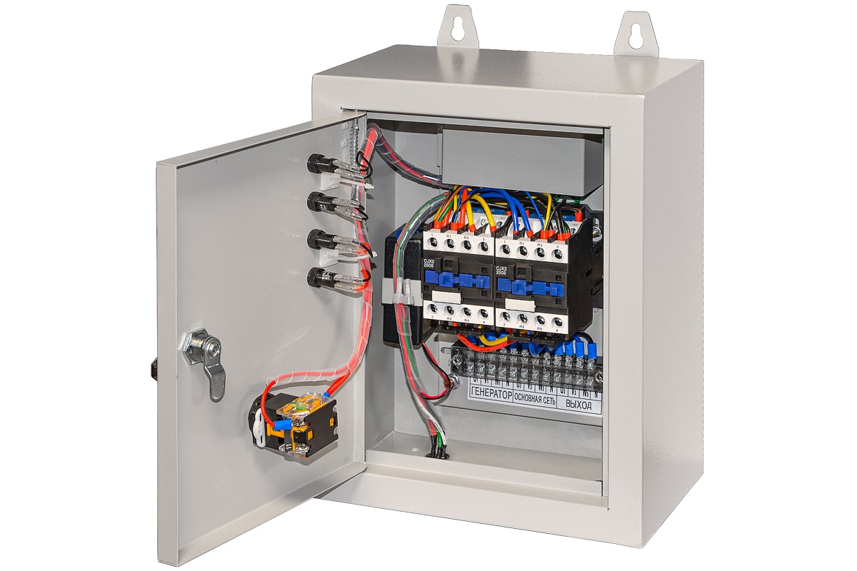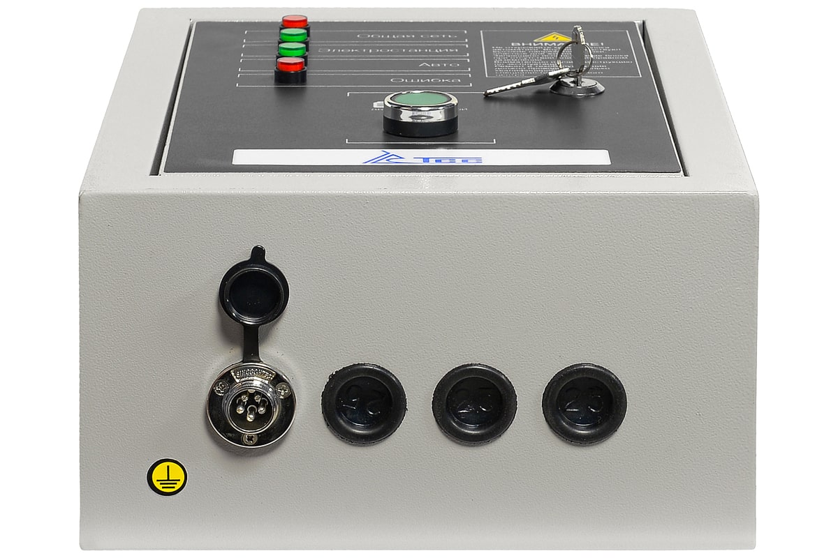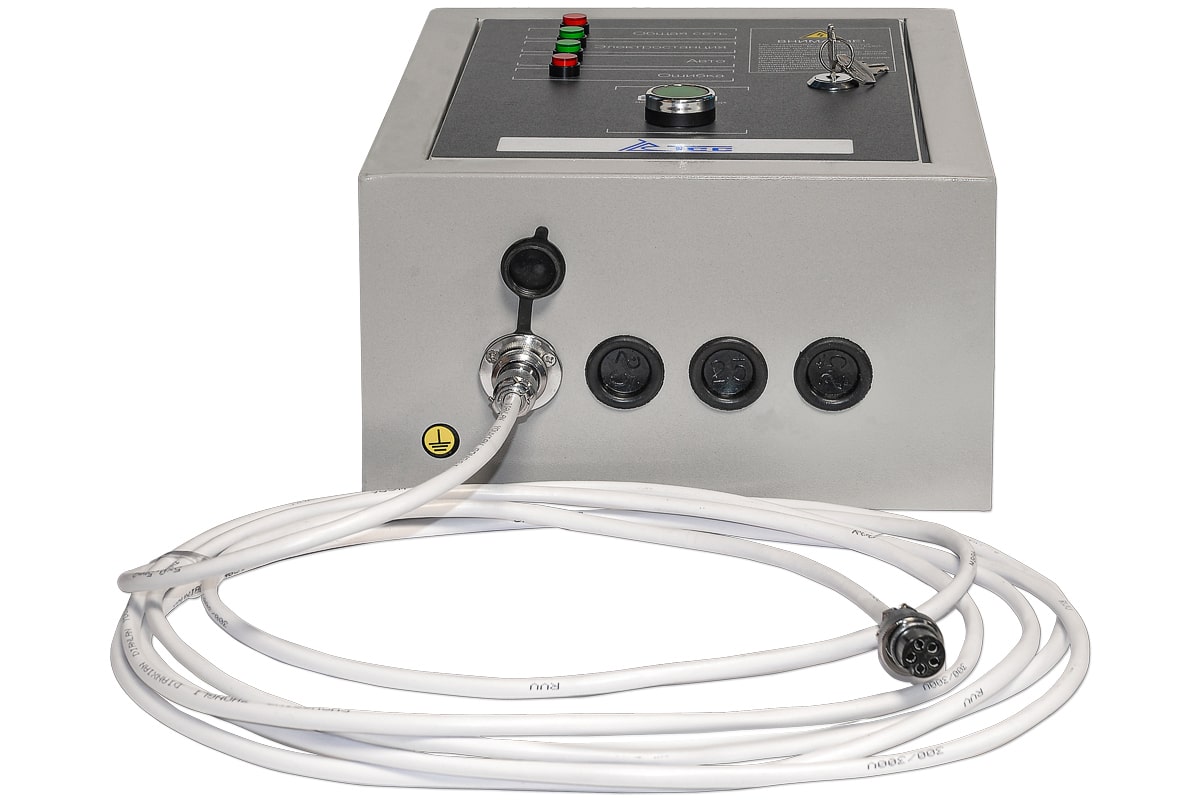 лок АВР для дизельного генератора от 5 до 8 кВт/400 включает в себя систему автозапуска (автоматического ввода резервного электропитания). При появлении основного источника электропитания происходит отключение электростанции. Блок автоматического управления для контроля наличия напряжения в сети.