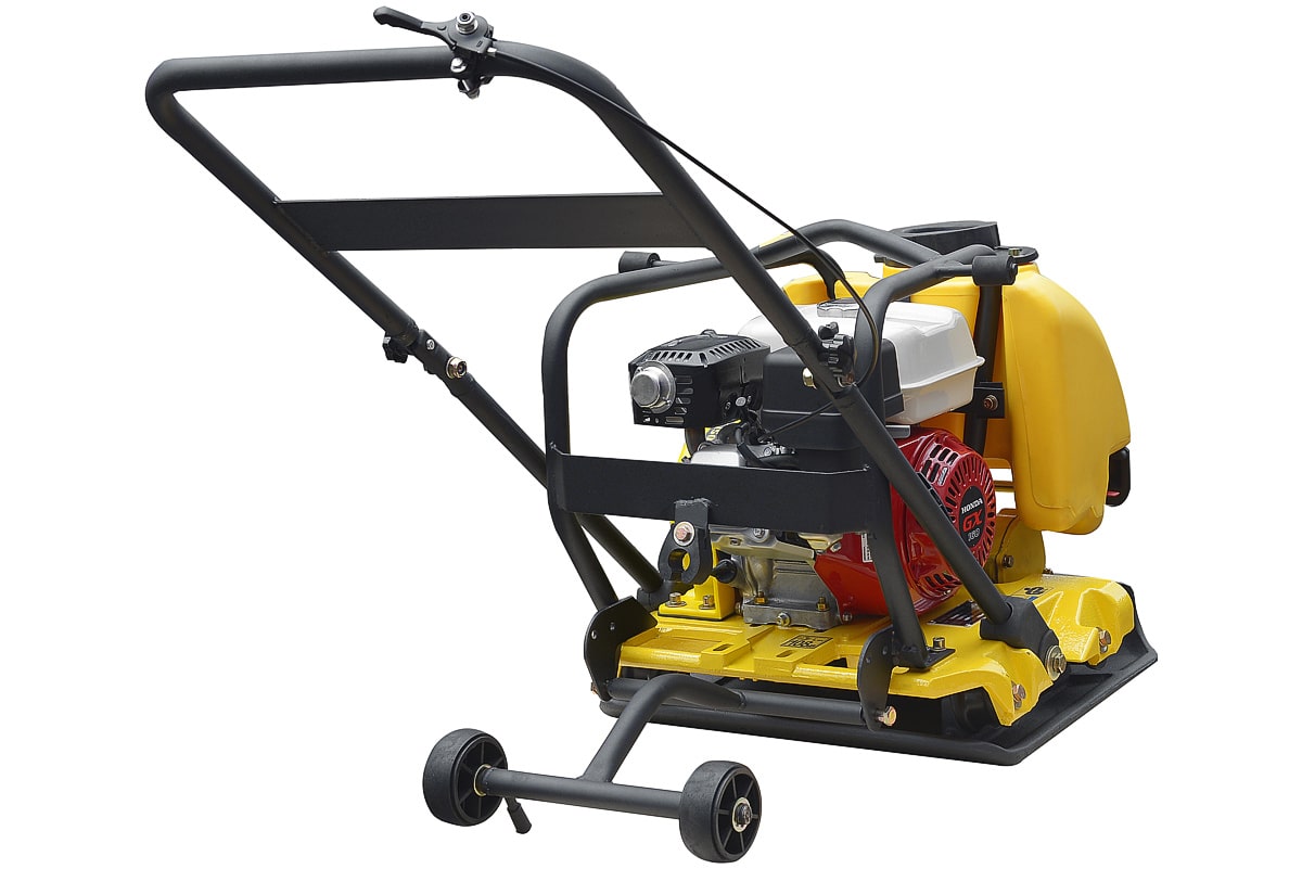 - Встроенные колеса облегчают перемещение виброплиты между рабочими зонами.